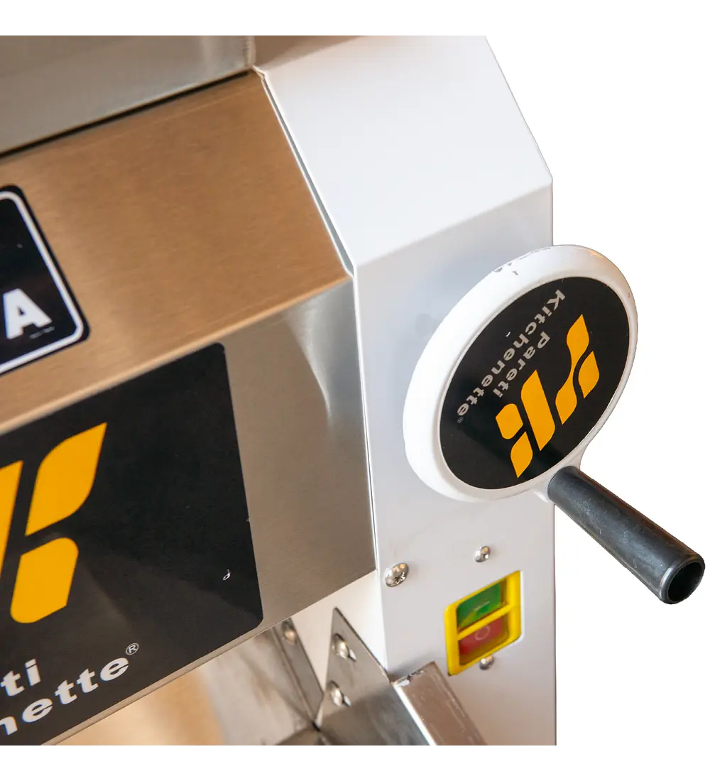 - Rodillo de acero inoxidable de 38 cm de ancho, ideal para masas medianas.