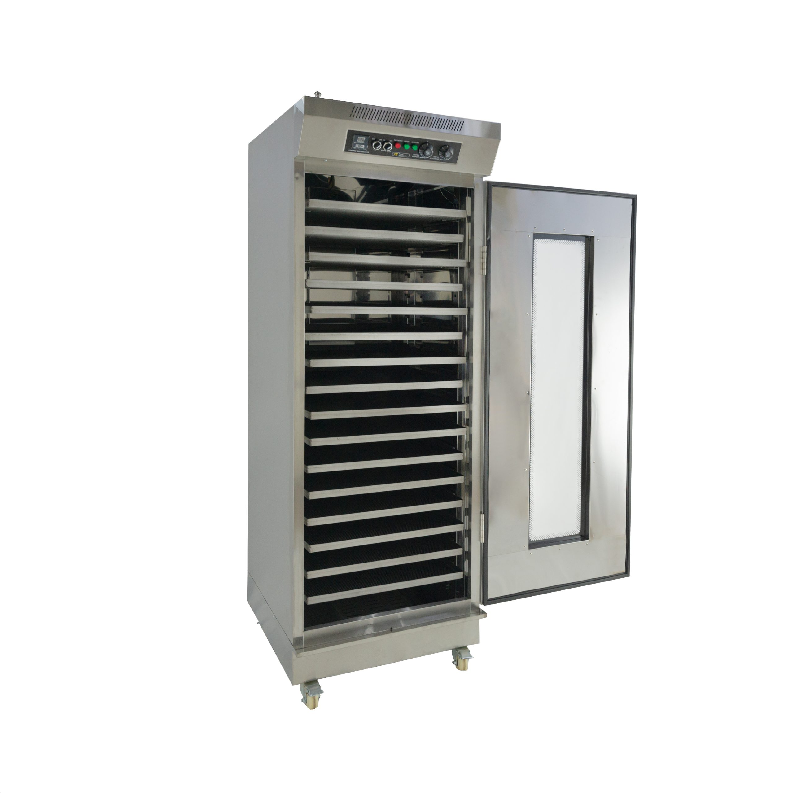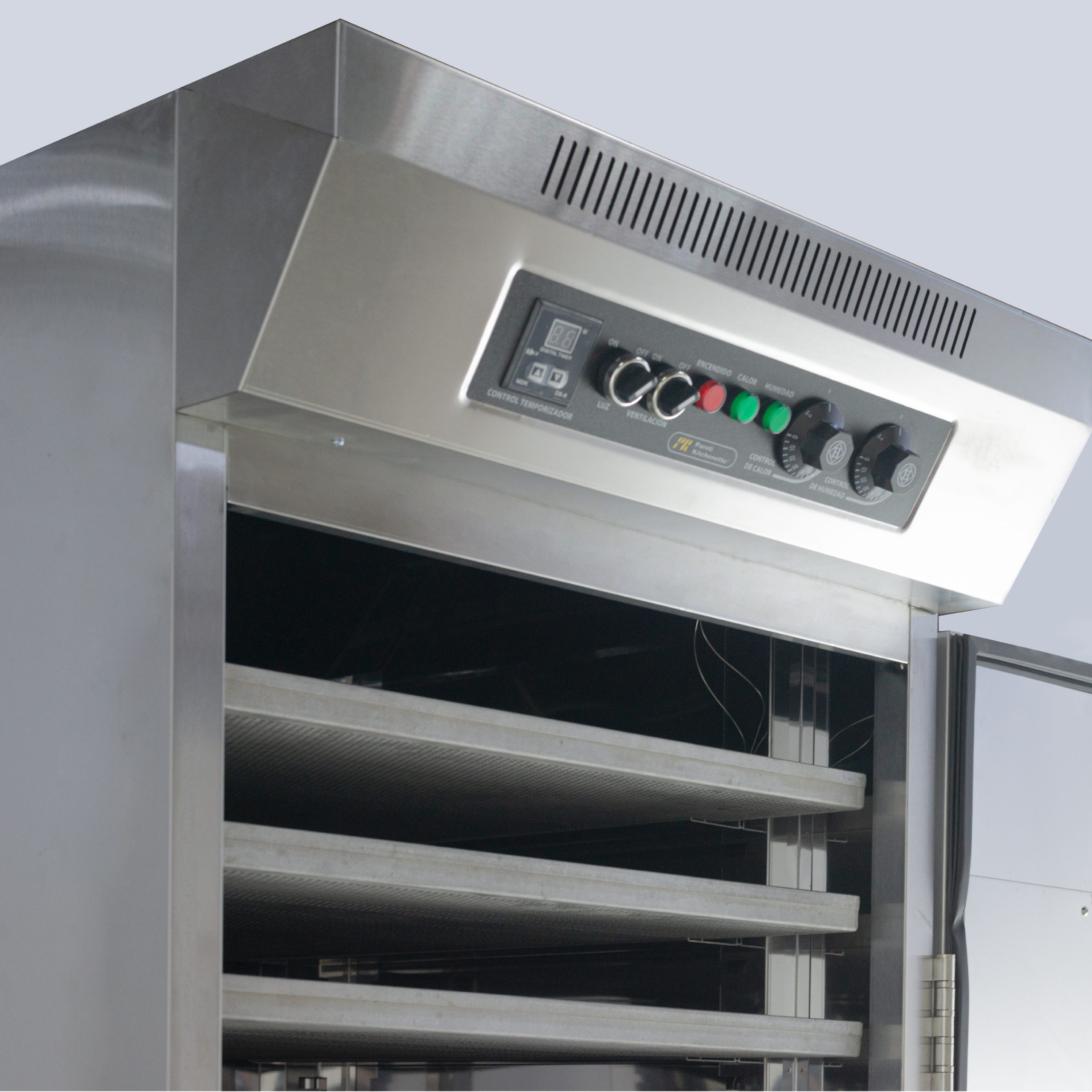La cámara de fermentación modelo FPK 16 de Pareti-Kitchenette® mejorará la fermentación de tus masas gracias a que permitirá que la masa de pan fermente de manera uniforme. Con la cámara de fermentación podrás controlar el nivel de calor y humedad de manera precisa, por lo que en todo su interior tanto el calor como la humedad se encontrará uniforme logrando que tus preparaciones tomen un volumen deseable. Nuestras cámaras fermentadoras cuentan con un perfecto sistema de 4 factores; Humedad, Temperatura, Tiempo y Ventilación. Está se puede conectar a red de agua facilitando el proceso de humedad de la fermentadora.