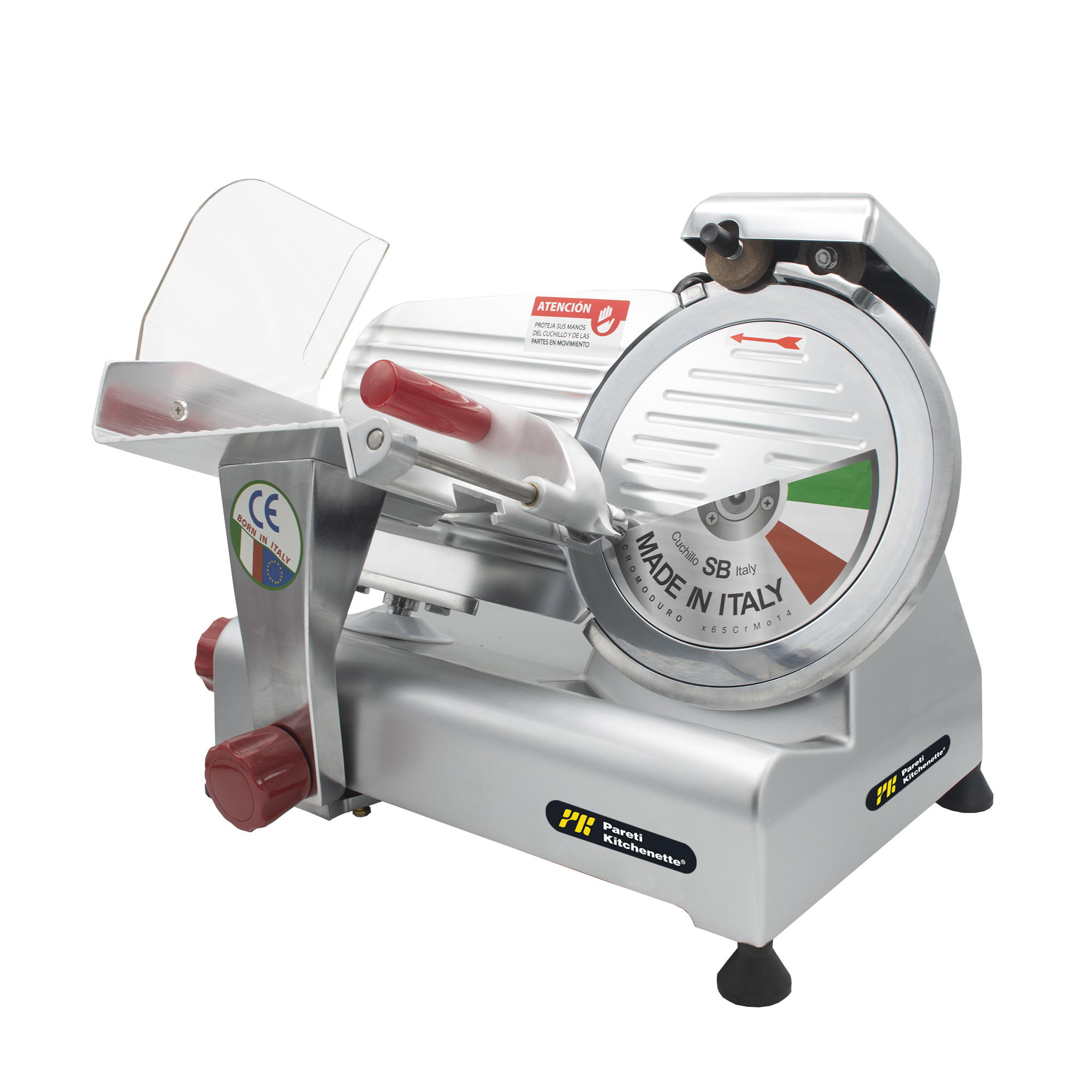 Las cortadoras de cecinas son un instrumento necesario para cualquier negocio. Con las cortadoras de cecinas Pareti-Kitchenette® podrás realizar cualquier corte de forma sencilla gracias a que posee un disco único italiano “SB” endurecida con cromoduro para un afilado que dura por más tiempo. Su cuerpo y fabricación es robusta, construida en aluminio para entregar durabilidad, estabilidad y control de oscilación.