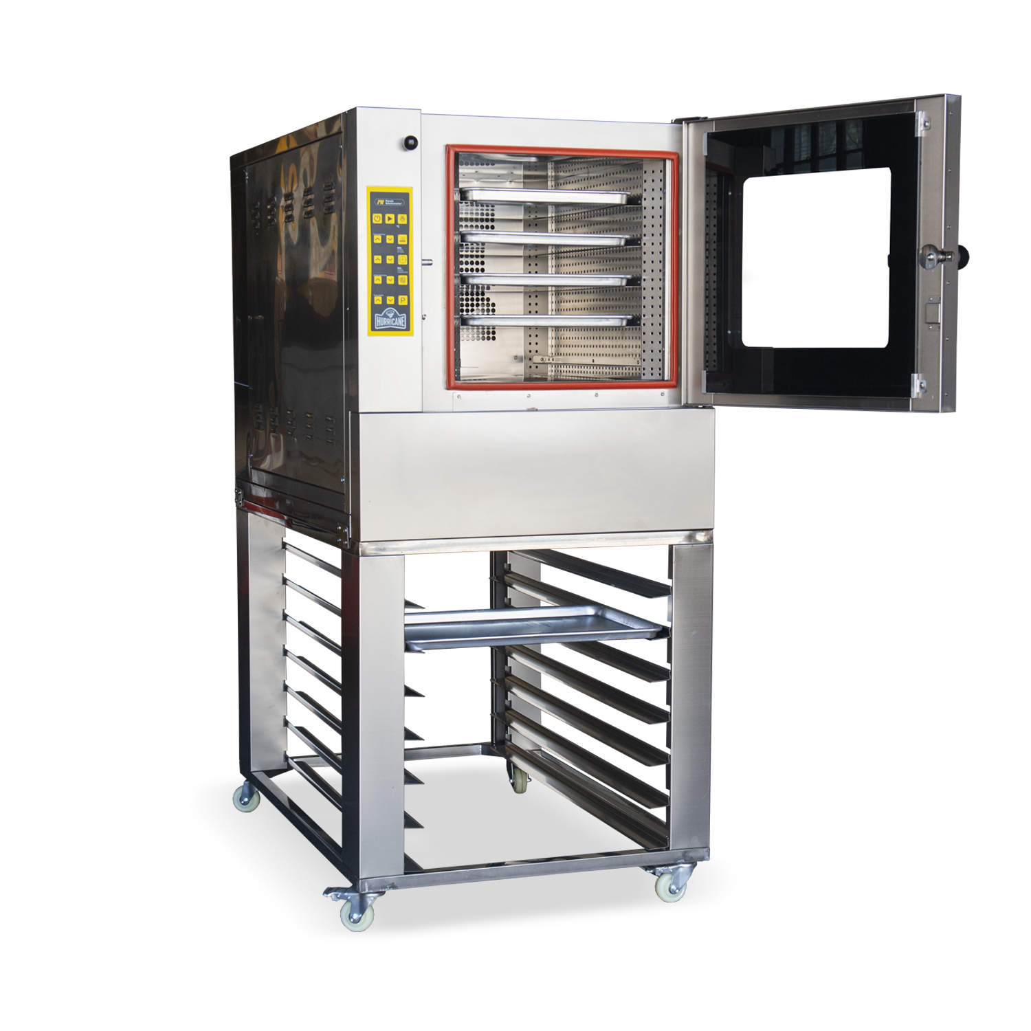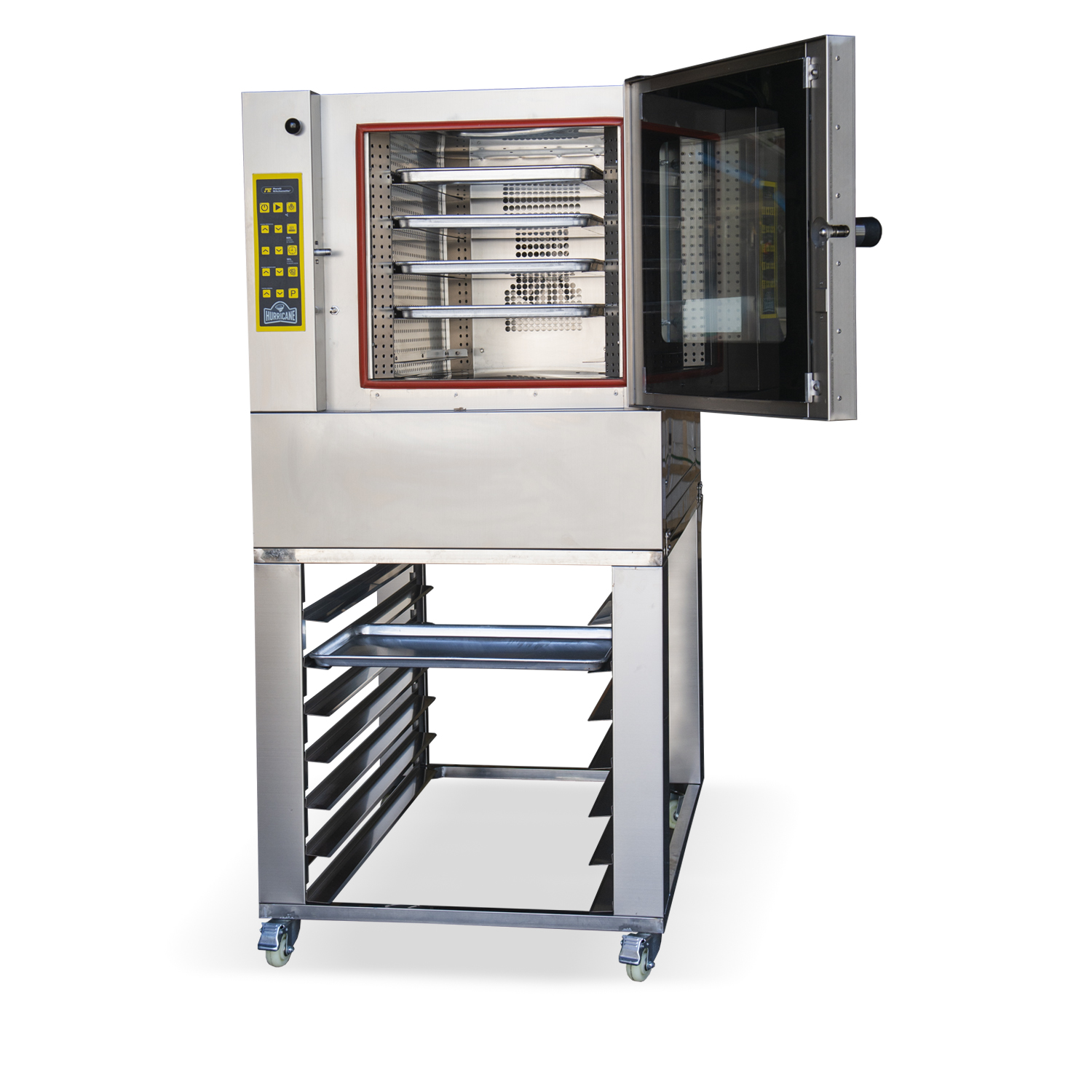 Con espacio para 5 bandejas de 40×60 cm y separación de 90 mm entre niveles, el Hurricane ofrece una versatilidad impresionante. Ideal para panaderías, cocinas industriales y centros de producción intensiva, donde cada centímetro cuenta.