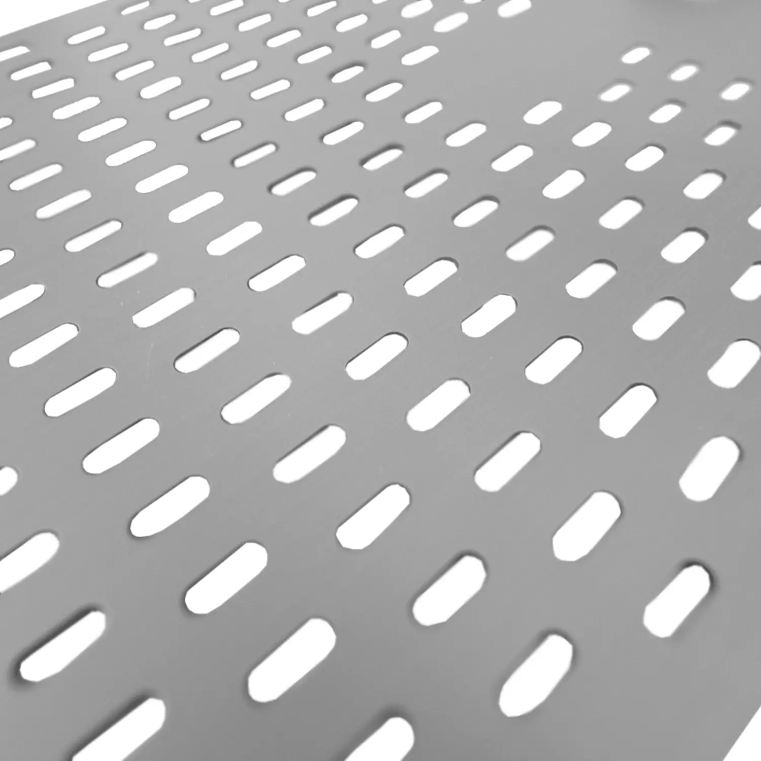 Pala PRO para Pizza 30×35 cm perforada de aluminio anodizado con mango de aluminio negro 120 cm.